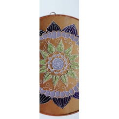 Bronzos színvilágú mandalás könyvjelző - saját Hatszínvirágos mandala élményfestésen készült mandala fotójával díszítve